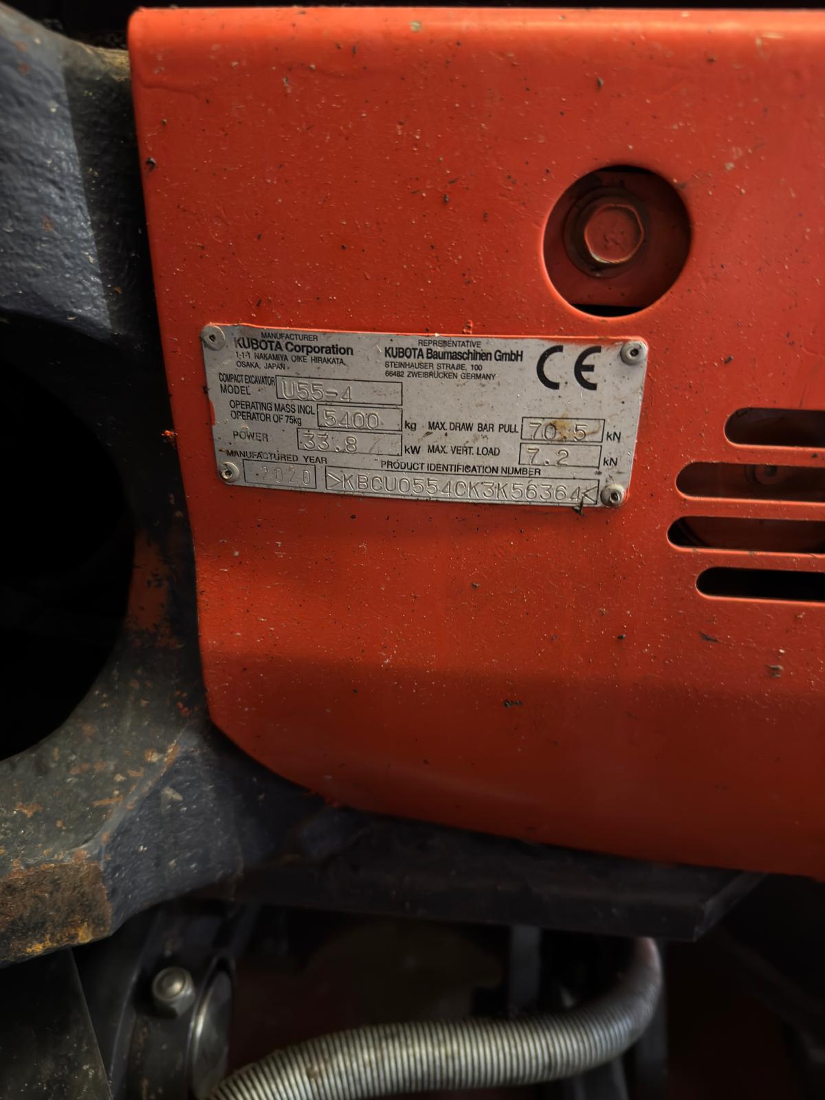 Mini excavadora Oruga KUBOTA U55-4📅2020